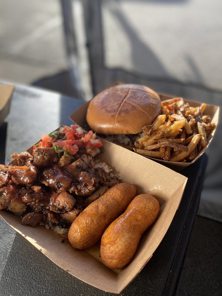 We are a restaurant. We serve traditional Jamaican jerk chicken with sides of rice, and plantains. Jerk is a style of cooking that involves barbecuing chicken/pork with Jamaican spices such as pimento,scotch bonnet peppers, and thyme. Other tasty meals we serve are jerk chicken sandwiches, jerk chicken wings, festival (fried caribbean cornbread), and jerk chicken fries. We are a catering/event Jamaican food vendor. We serve traditional Jamaican jerk chicken with sides of rice, and plantains. Jerk is a style of cooking that involves barbecuing chicken/pork with Jamaican spices such as pimento,scotch bonnet peppers, and thyme. Other tasty meals we serve are jerk chicken sandwiches, jerk chicken wings, festival (fried caribbean cornbread), and jerk chicken fries.